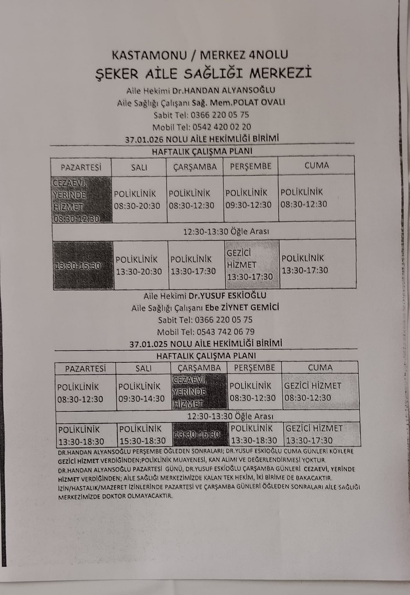 37.01.26 Nolu Aile Hekimliği Birimi ( AHB )